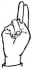 На ћирилици написано ЕМА КОМАРНИЧКИ састоји се из 13 слова [?]. Исписано ћириличном једноручном азбуком за глувонеме: